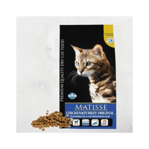 A Matisse Chicken, Turkey & Vegetable egy kiváló minőségű, teljes értékű eledel, amely minden felnőtt macska napi igényeit kielégíti. A gondosan válogatott alapanyagok – csirke, pulyka és zöldségek – tökéletes egyensúlyban biztosítják a megfelelő tápanyagbevitelt, ízletes formában.